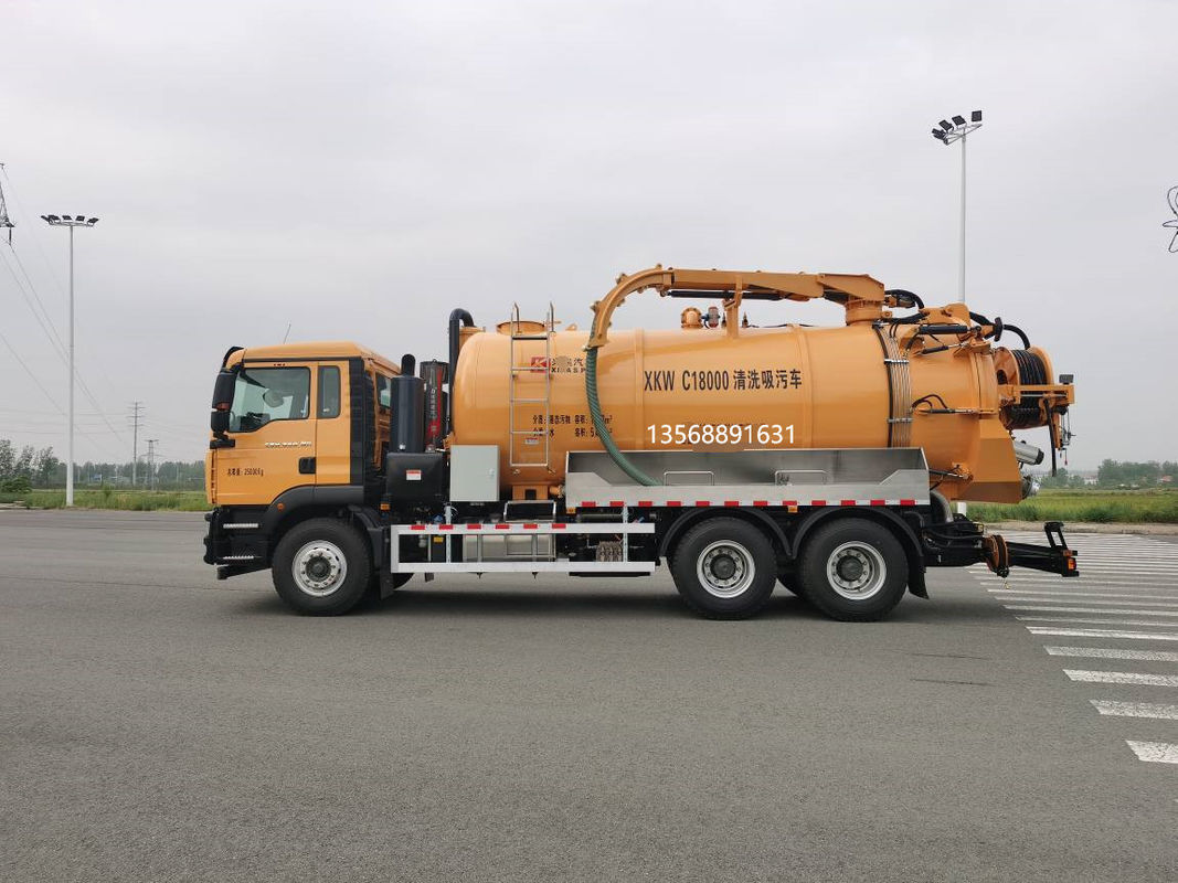Το φορτηγό καθαρισμού και αναρρόφησης είναι ένα εξειδικευμένο φορτηγό καθαρισμού και αναρρόφησης λυμάτων που αναπτύχθηκε και κατασκευάστηκε με ευρωπαϊκή τεχνολογία. Το αυτοκίνητο υιοθετεί το σασί του Heavy Duty Truck Shandeka, εισαγόμενο σύστημα αντλίας υψηλής ροής υψηλής πίεσης, σταθερό πίδακα νερού υψηλής πίεσης και αξιόπιστη ποιότητα. Το ιταλικό σύστημα αντλίας κενού Roots έχει υψηλή ικανότητα αναρρόφησης, απλή συντήρηση και μπορεί να λειτουργεί 24/7 για να ανταποκρίνεται σε διάφορες σκληρές συνθήκες εργασίας. Το σύστημα βραχίονα αναρρόφησης, πλήρως τηλεχειριζόμενο και αυτοματοποιημένο, μειώνει σημαντικά τον φόρτο εργασίας των χειριστών. Αυτό το όχημα χρησιμοποιείται ευρέως για την εκβάθυνση και τη διάσωση έκτακτης ανάγκης των κύριων αγωγών αποχέτευσης των αστικών δήμων και τις εργασίες εκβάθυνσης των αντλιοστασίων. Μπορεί επίσης να επεκταθεί σε υδραυλικό εξοπλισμό μη καταστροφικής εκσκαφής.
